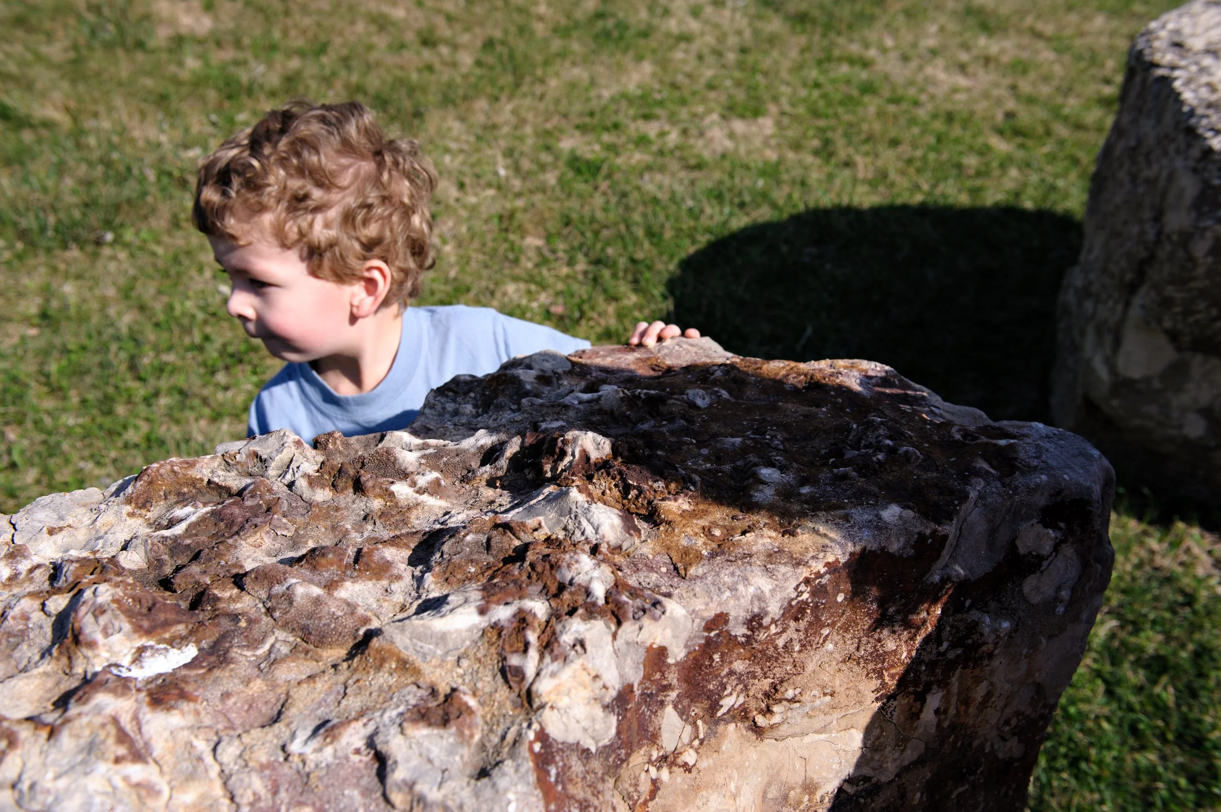 Thanks again to that nifty little Roadtrippers app, we found the Devonian Fossil Gorge, in Iowa City. It was a perfect place to get out and stretch our legs while walking along what is a 375 million year old ocean floor. The geekery is strong in my children, especially Elijah, and I’m willing to bet that they could’ve spent hours examining every single rock and fossil that the place had. Wyatt…he’s not so much a walker (yet), so he was content to lounge in the warm sunshine.