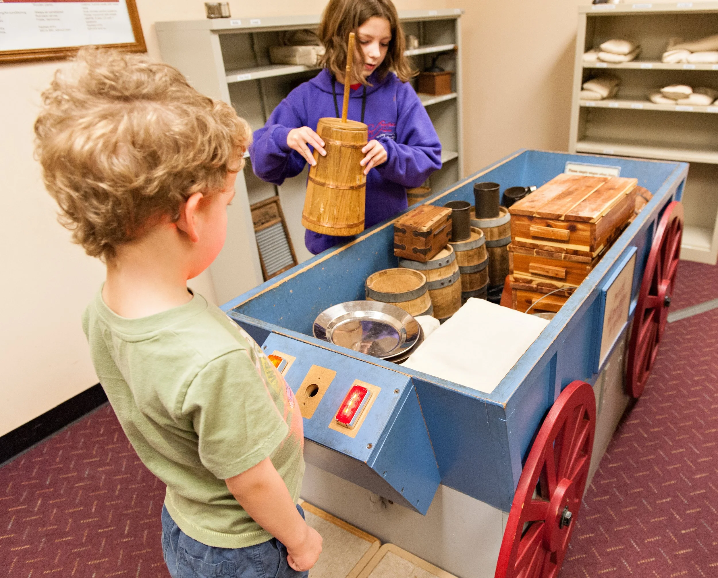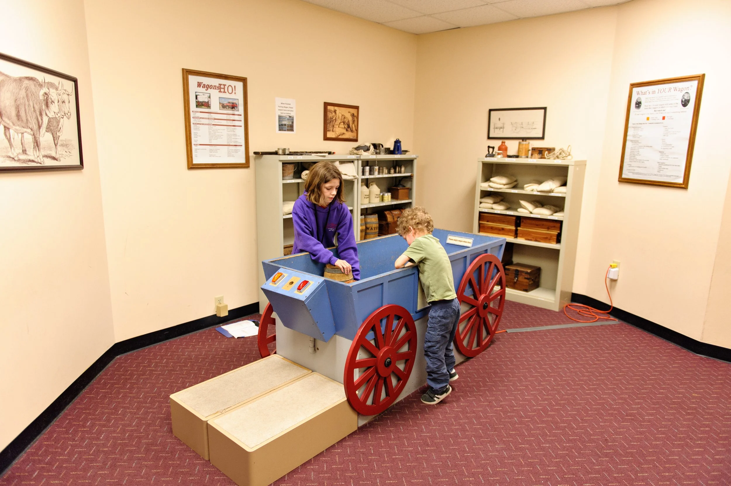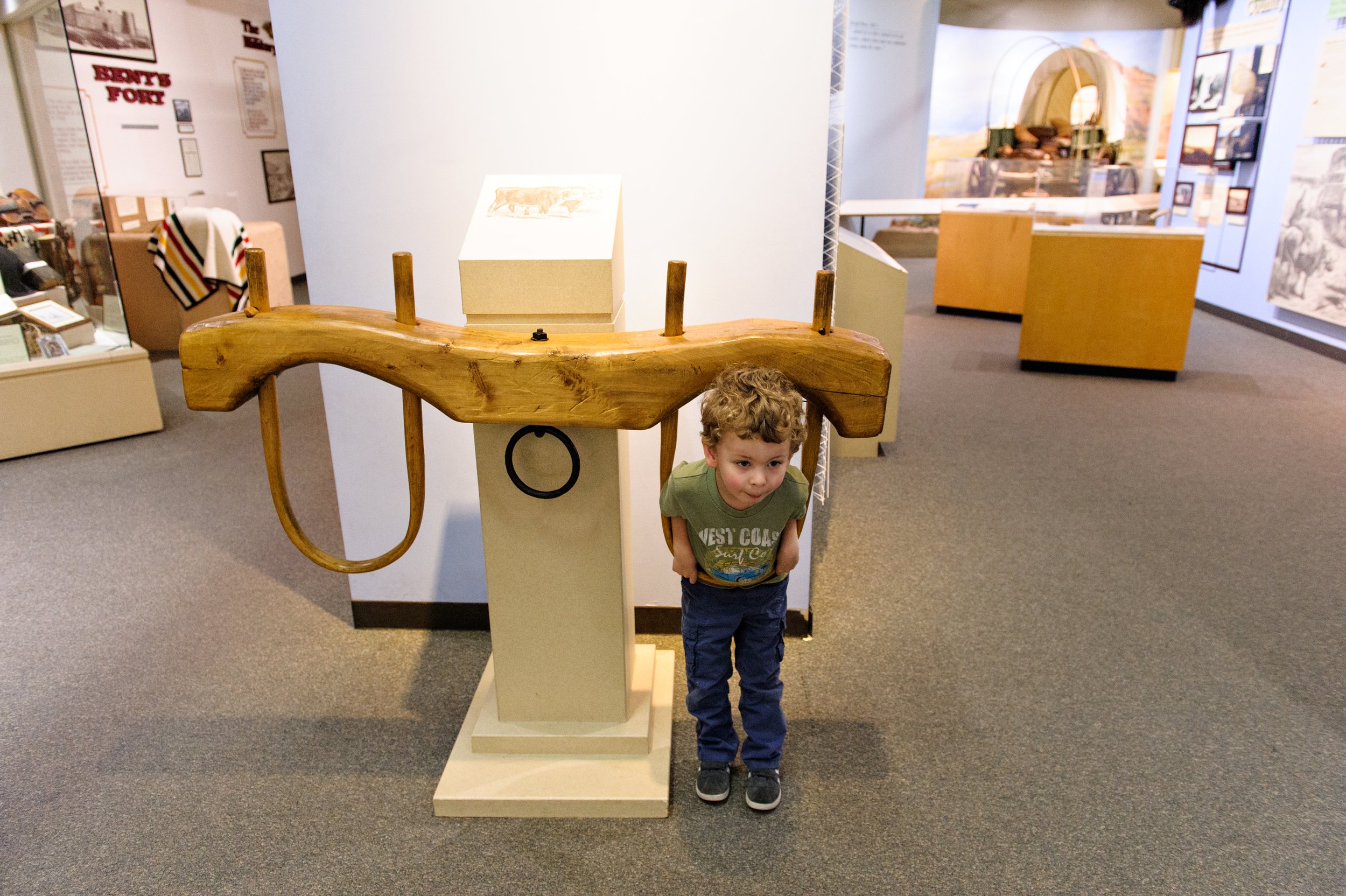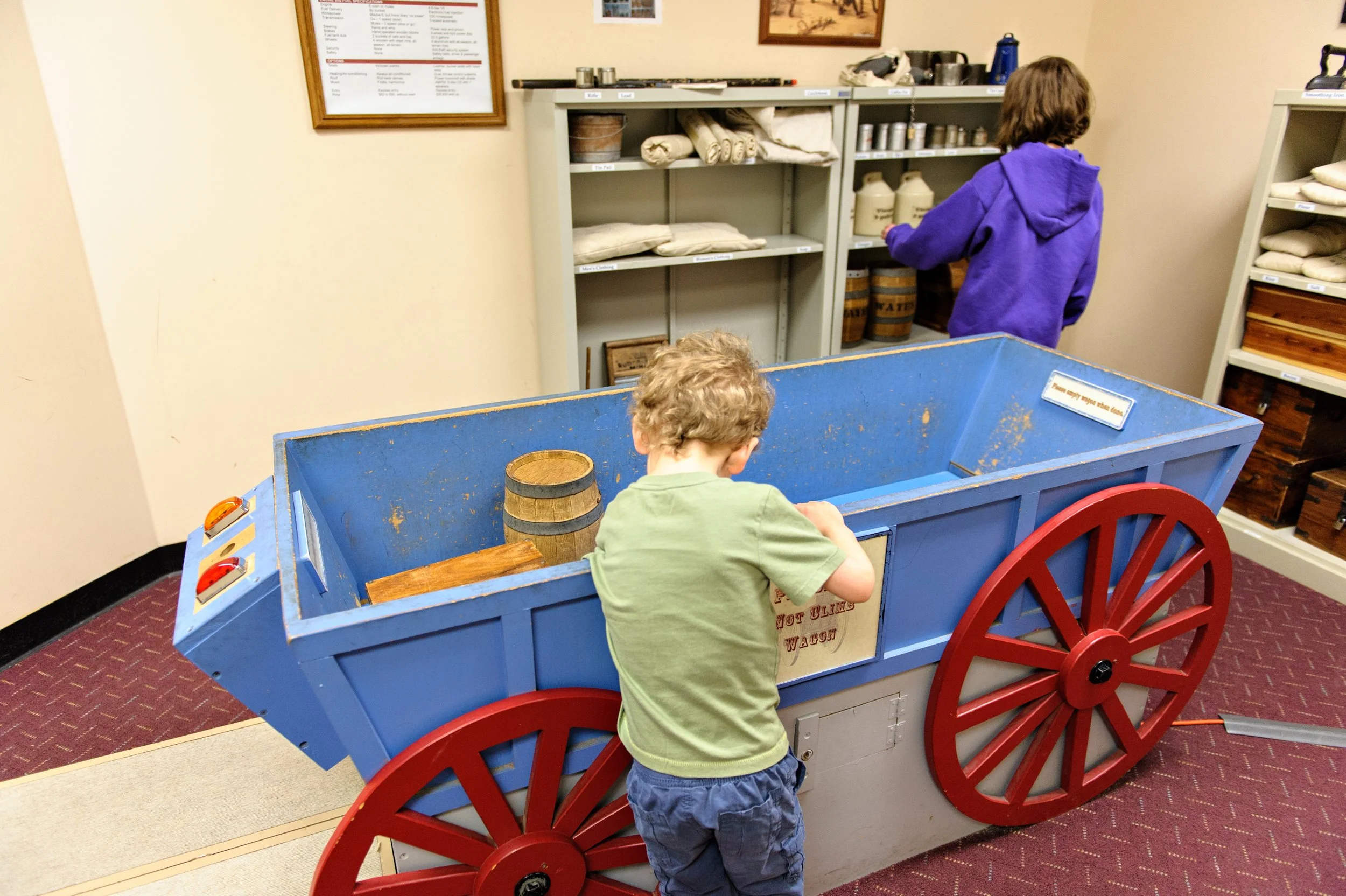 We had about an hour to explore the museum before it closed. Luckily, it isn’t a very big museum, but it’s packed full of information and artifacts from the pioneers’ journey. The kiddos even got to pack a scaled-down version of a pioneer wagon with items suggested for a five month journey on the trail. When they went over the limit of what their wagon would hold, a red light would flash on. Too bad the emigrants didn’t have this technology at the beginning of their journey, it would’ve saved a lot of heartache, I’m sure.
