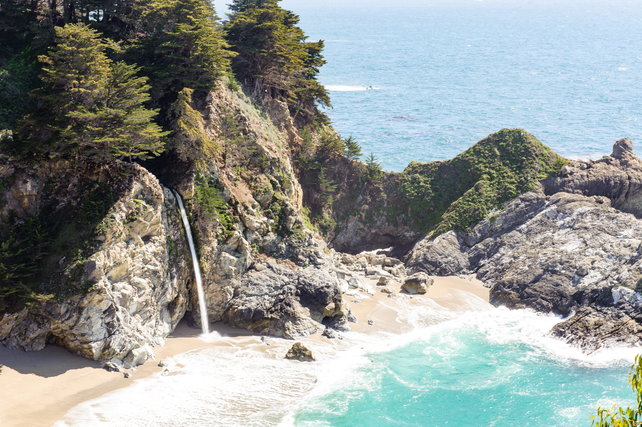 Day two was spent exploring Big Sur. We crossed Bixby Bridge, and I contributed to it being one of the most photographed bridges along the Pacific Coast Highway. Then, we took the short, half-mile hike out to McWay Falls. It was definitely worth it! Can you believe how blue the water is? We finished our day at Pffeifer Beach, home of purple sand (for real!) and the Sun Portal. I had been hoping to grab some photos of the Sun Portal at sunset, but it was SO windy that the sand was whipping everywhere, so after a bit, we headed back to our hotel. Next time, for sure!