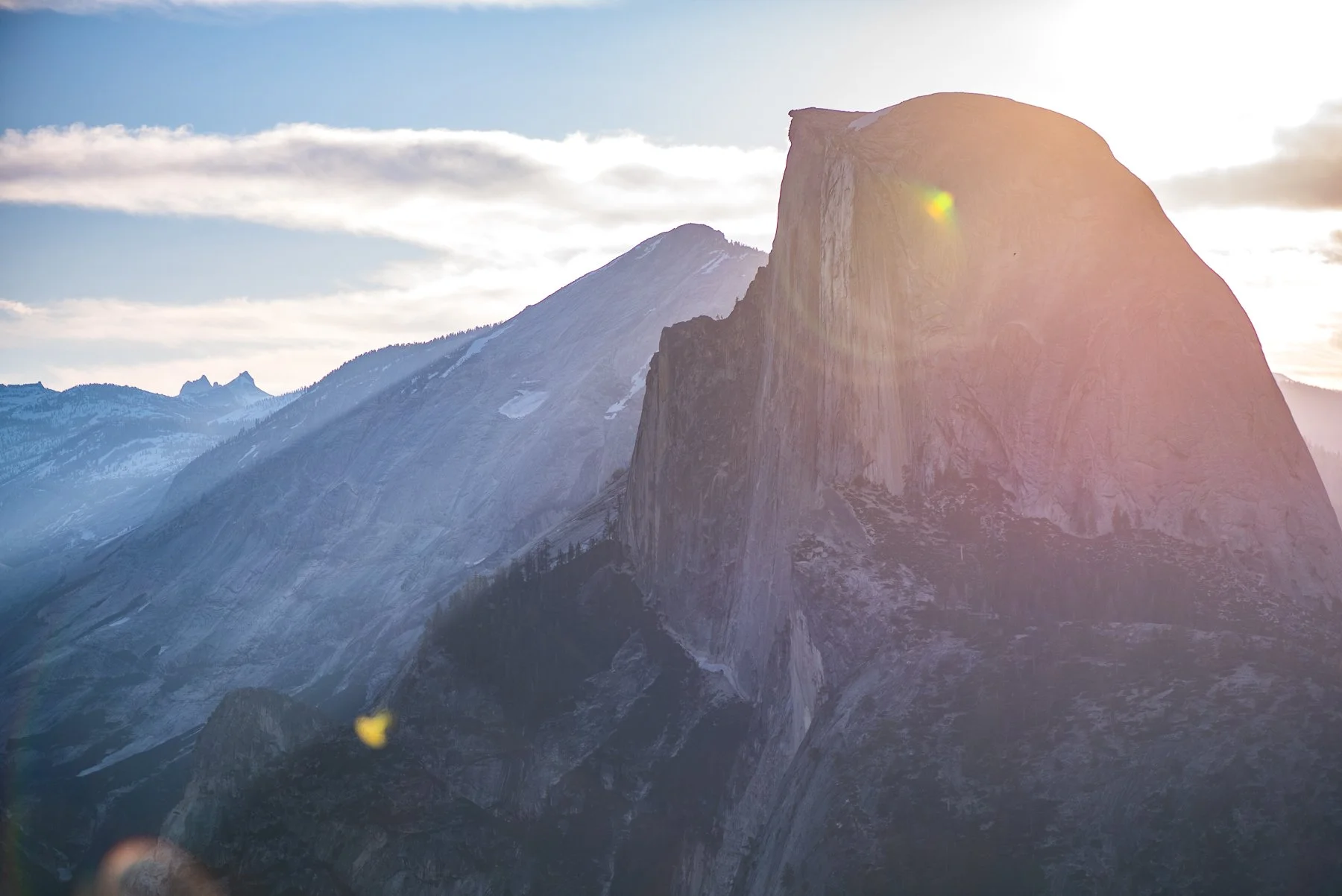 Yosemite National Park has more domes than any other locale on the planet. The domes were formed around 65 million years ago, when molten, igneous rock solidified into granite deep in the Earth’s core. The pressure eventually pushed the granite to the surface, which was then shaped into domes as the uplifted, curved layers of rock cleaved off. Contrary to popular belief and appearance, Half Dome was never actually a full dome (more like 80%). Glacial movement towards the end of Earth’s last ice age brought fields of debris that scoured and polished the granite into the smooth domes we’re familiar with today. It also undercut the base of Half Dome, carrying away about 20% of the formation, leaving the familiar sheer face on the northwest side.